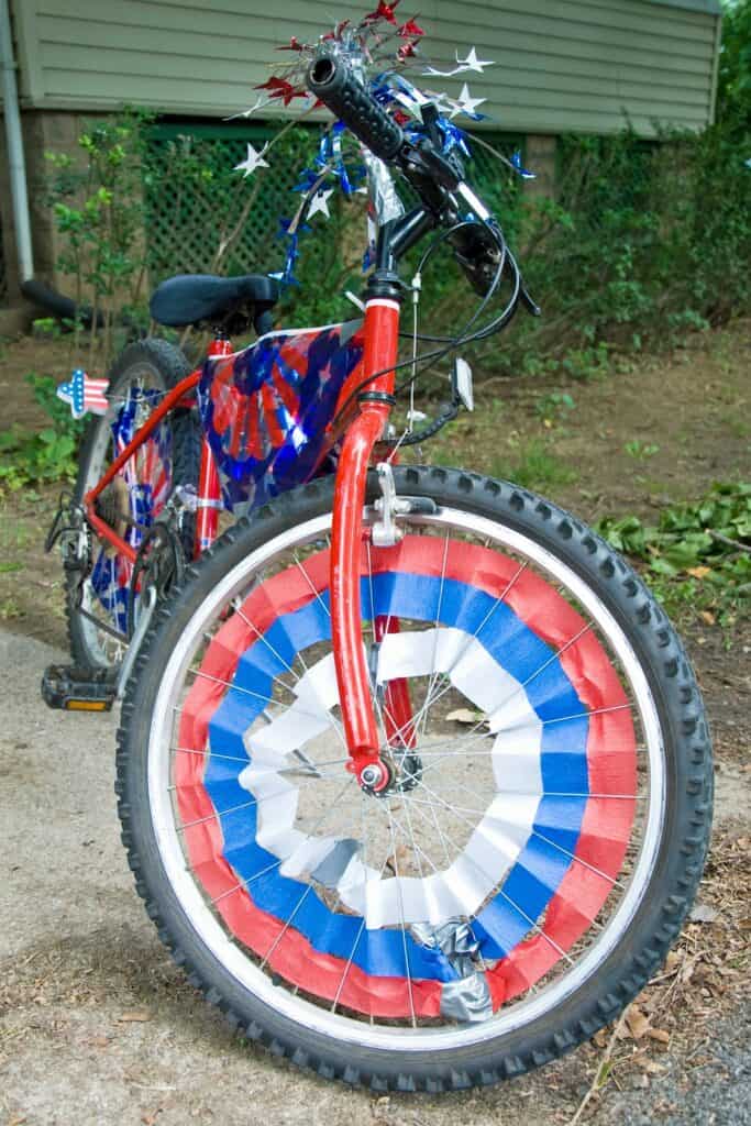 Put American flags or red, white, and blue streamers on your bike to give it a fun look. Shutterstock.