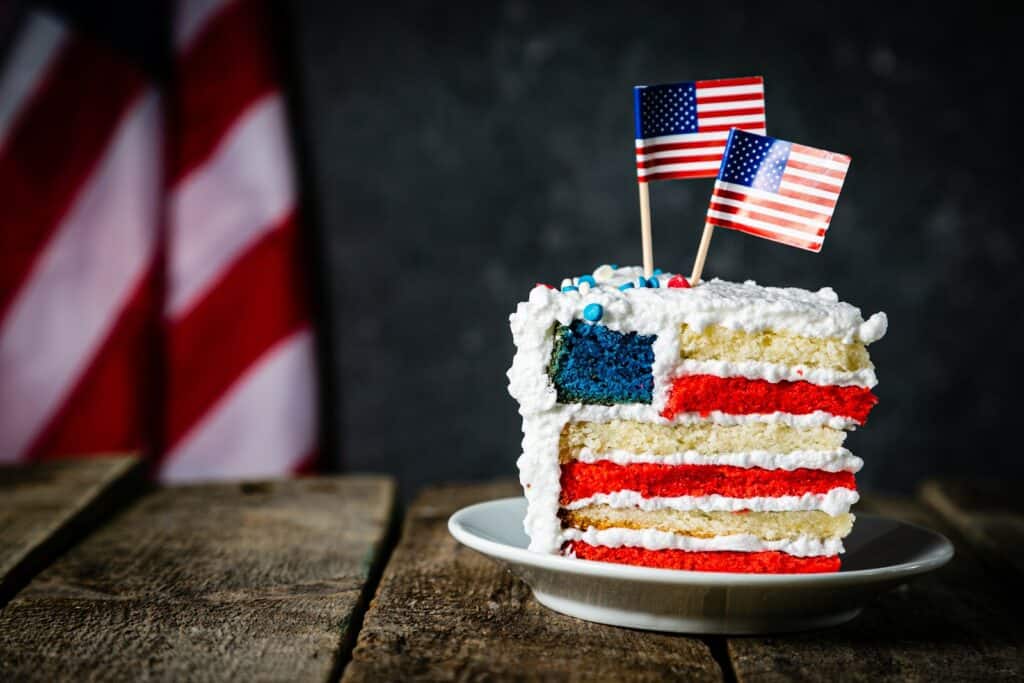 You can dive into your creative baking side and try to make a red, white, and blue American flag cake. Shutterstock.
