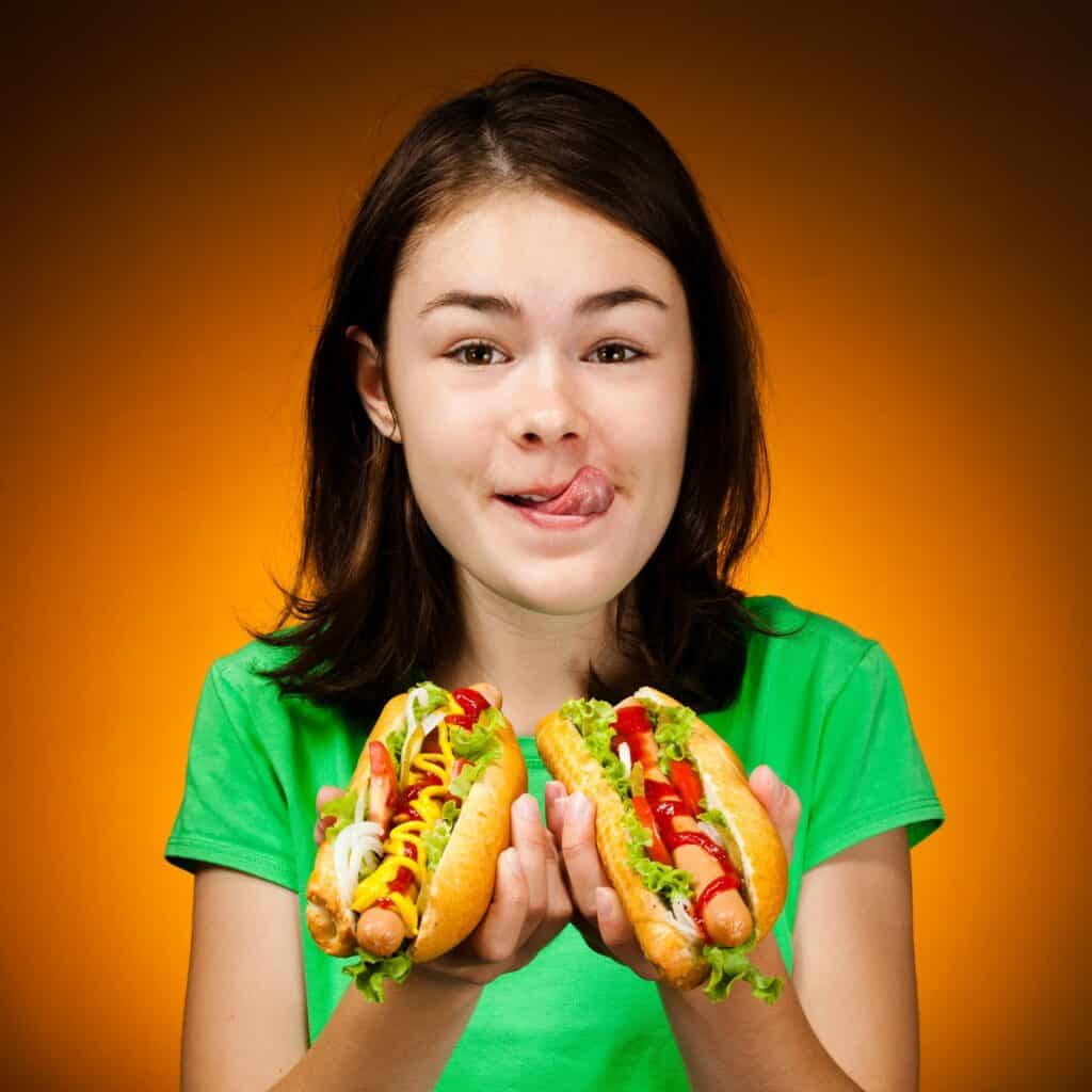 Creating a hot dog eating contest where everyone puts on their toppings and gets creative can make for a fun and exciting family Fourth of July activity. Shutterstock.