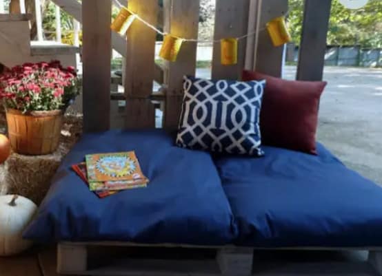 Not every reading nook has to have conventional elements to include incorporating pallets for an outdoor reading nook. Pallets can often be picked up for cheap from several retailers.